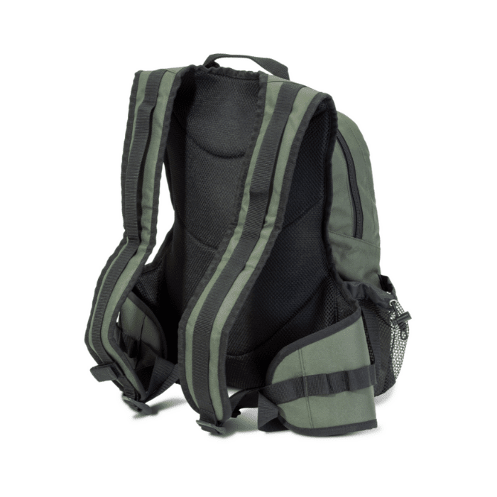 Die zwei Schultergurte und die Rückenpartie sind ausreichend gepolstert um den Rucksack auch für längere Zeit tragbar zu machen. Zur Sicherheit verfügt er auch noch über einen Bauchgurt. An Schulter und Bauchgurt sind Schlaufen angebracht, welche noch Zangen etc. aufnehmen können.