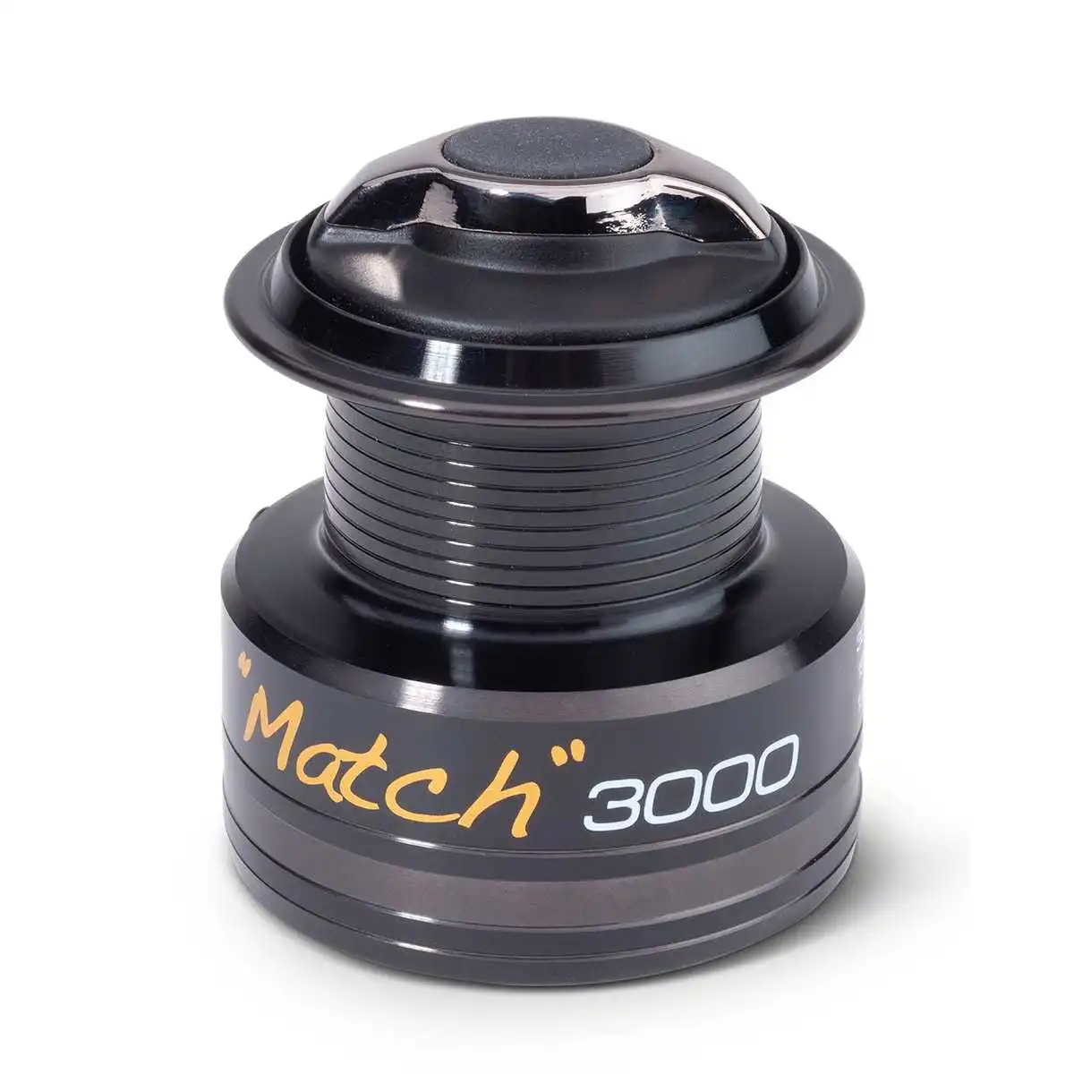 Die Matchrolle wird mit einer tiefen und mit einer flachen Spule geliefert, welche sich schnell wechseln lassen. Der robuste Körper besteht aus Aluminium. Außerdem ist er mit einem Screw-In Kurbelarm ausgestattet.