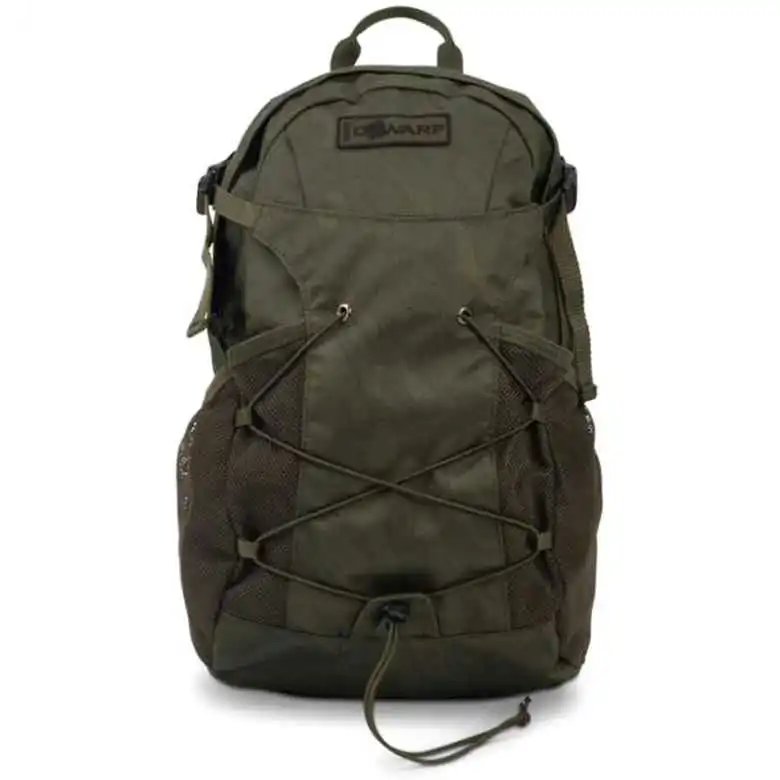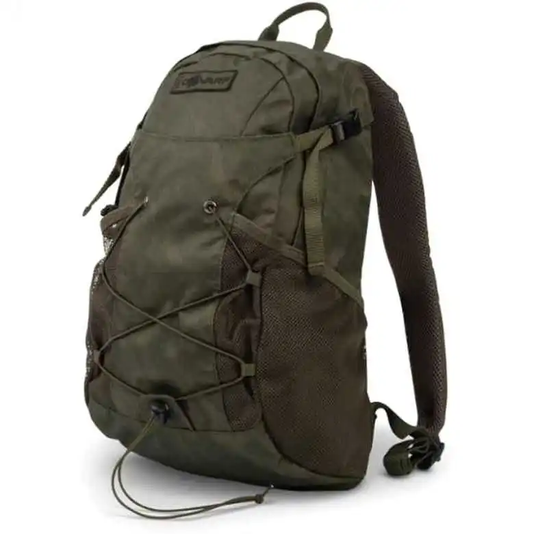 Der neue Nash Dwarf Backpack ist ein kompakter Rucksack für kurze Sessions. Er verfügt über einen Kabelausgang an der Oberseite zum Aufladen vom Telefon oder Kopfhörern, eine Känguru-Fronttasche mit Gurtband, integrierter Schnalle und elastischem Kompressionsband und zwei elastischen Netzseitentaschen. Zudem sind die Schultergurte gepolstert und verstellbar und es gibt einen Tragegriff dazu.
