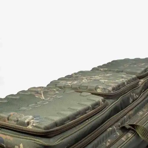Die Scope Ops R9 Transporter ist wohl die klügste Lösung um drei fertig montierte 9ft Scope Ruten zu transportieren. Wenn du die Ruten entnimmst siehst du zwei mit Reißverschluss verschließbare Fächer. Eines ist für deine Ausrüstung und das andere ist ein isoliertes Fach, um deine Lebensmittel und Köder frisch zu halten. Wenn du die R9 Transporter Tasche wieder schließt siehst du oberhalb drei mit EVA verstärkte Hauptfächer. Diese sorgen dafür, dass dein wertvolles Tackle geschützt wird und trotzdem jederzeit griffbereit bleibt.