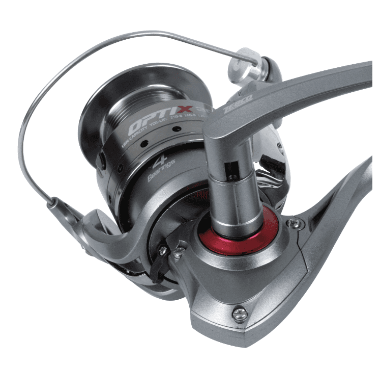 Optix-Spinnrollen sind vollgepackt mit Funktionen, wie einem starken und leichten Graphitgehäuse, einem massiven Messingritzel, dem TRU-Balance Rotordesign und einer geschmiedeten und gefrästen Aluminiumspule, die einen super geschmeidigen Schnurabzug im Drill ermöglicht.